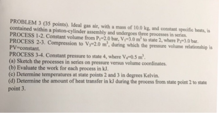 TD 1.3 Consider the piston cylinder arrangement as shown in figure. The piston diameters TD 1.9 A gas contained within a piston-cylinder assembly undergoes a thermodynamic TD 1.19 One-fourth kg of a gas contained within a piston-cylinder assembly undergoes a ... Document Viewer